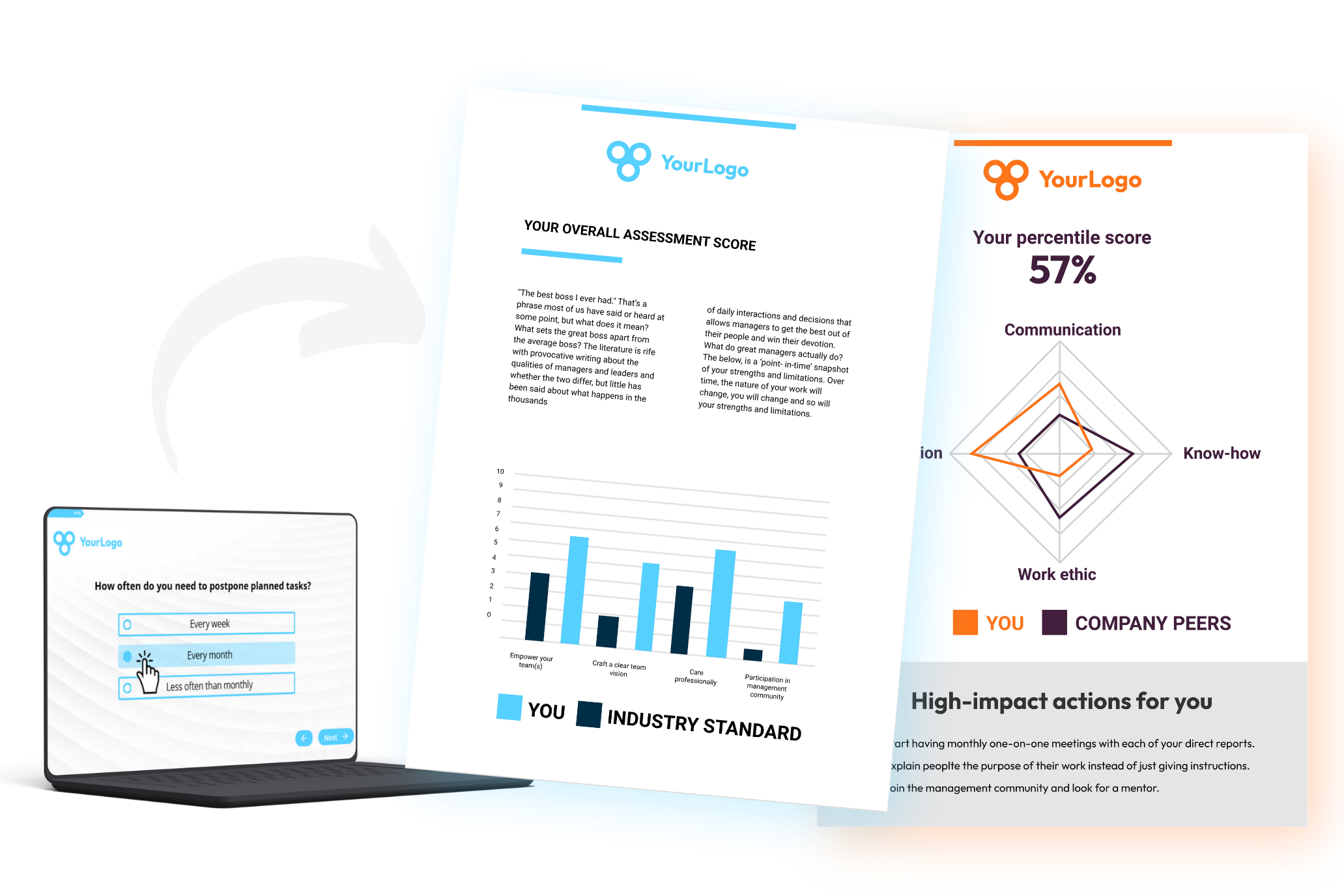 DIY is a hands-on approach to building everything by yourself. We will ensure you learn how to use the key features to build a great assessment and report. Likewise, we’ll support you until you are ready to go live and launch the assessment to the respondents